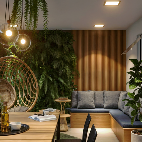 Projeto de reforma buscando integração de espaços, conforto e praticidade de forma elegante e funcional. O ambiente conta com bancada integrada, churrasqueira e um espaço de estar aconchegante ideal para reuniões de família e Happy Hour com os amigos.